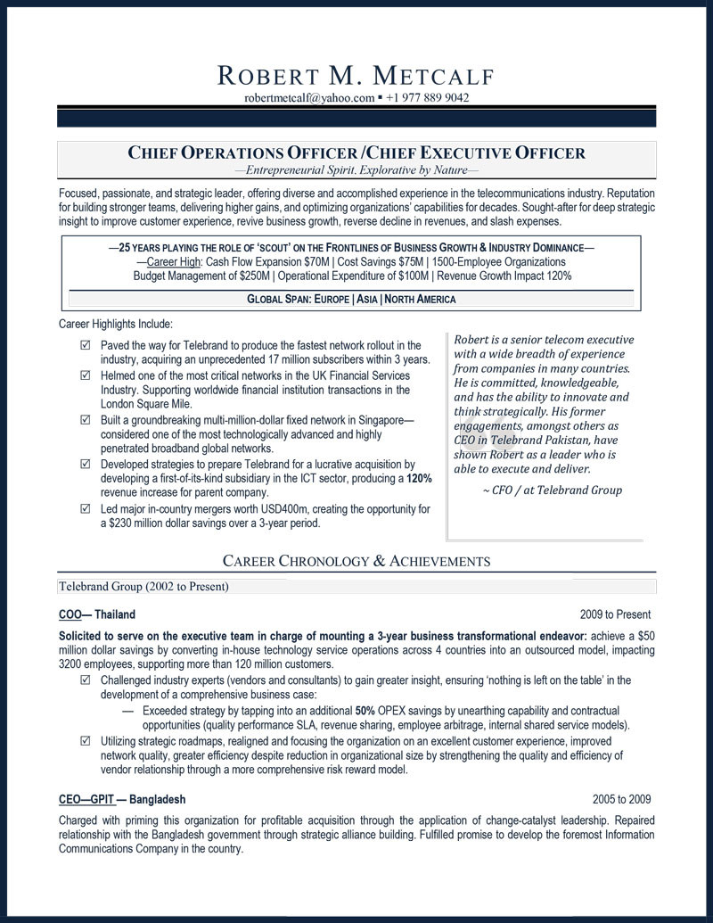 6 photos of the Sample Resume for Senior Executive Ceo
