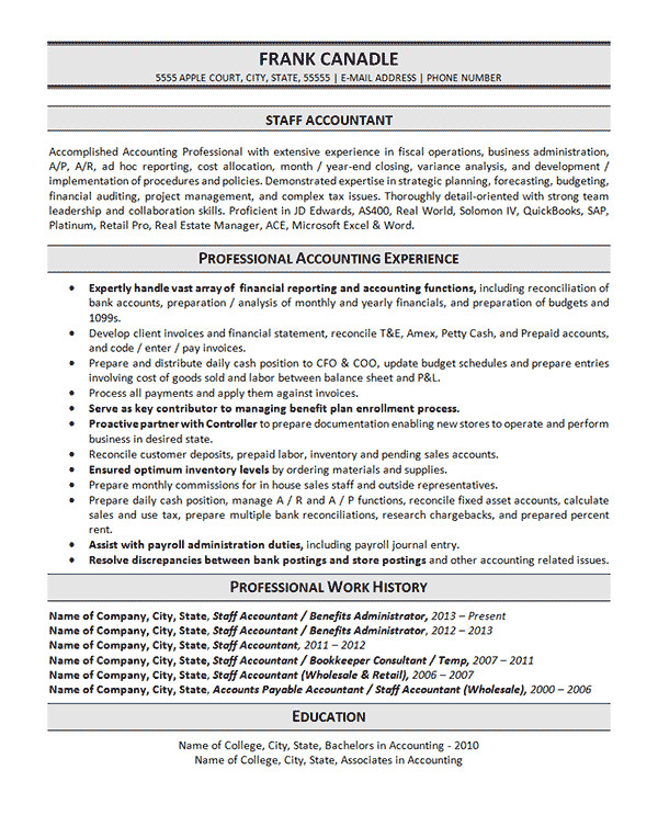 Back To Sample Resume for Staff Accountant Position