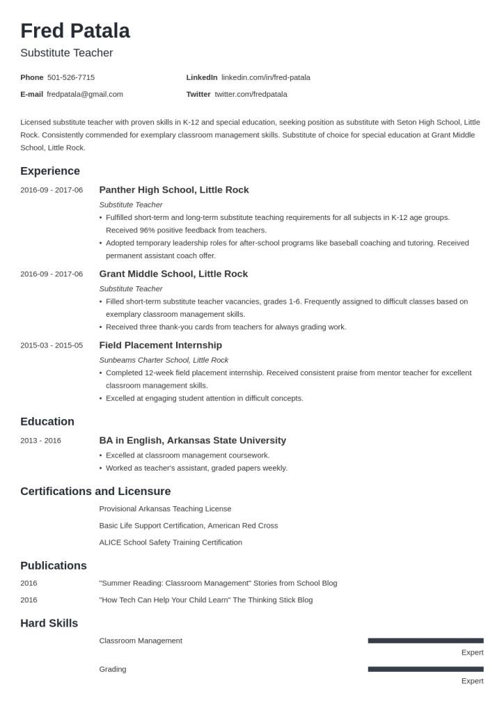 have new images for Sample Resume for Substitute Teacher with No Experience Substitute Teacher Resume with No Experience 2021? please contact us immediately.