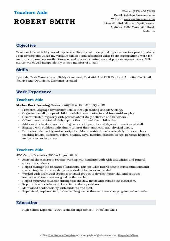 Sample Resume for Teacher Aide Position Teachers Aide Resume Samples and all other pictures, designs or photos on our website are copyright of their respective owners. we get our pictures from another websites, search engines and other sources to use as an inspiration for you. please contact us if you think we are infringing copyright of your pictures using contact page. we will be very happy to help you.