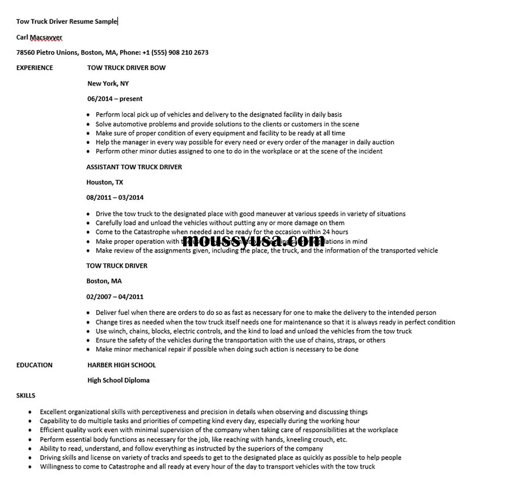 have new images for Sample Resume for tow Truck Driver tow Truck Driver Resume Sample In 2020? please contact us immediately.