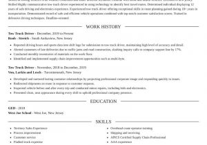 Back To Sample Resume for tow Truck Driver