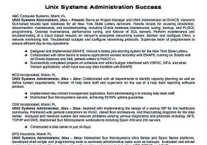 Sample Resume for Unix System Administrator Sample Resume for Experienced Linux System Administrator and all other pictures, designs or photos on our website are copyright of their respective owners. we get our pictures from another websites, search engines and other sources to use as an inspiration for you. please contact us if you think we are infringing copyright of your pictures using contact page. we will be very happy to help you.