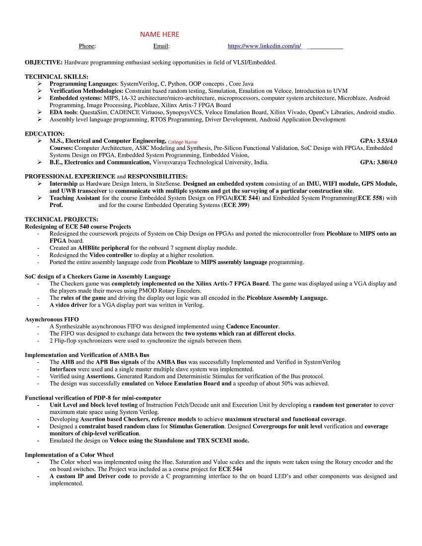 Sample Resume for Vlsi Verification Engineer Fresher Frontend-sample-resume – Vlsi and all other pictures, designs or photos on our website are copyright of their respective owners. we get our pictures from another websites, search engines and other sources to use as an inspiration for you. please contact us if you think we are infringing copyright of your pictures using contact page. we will be very happy to help you.