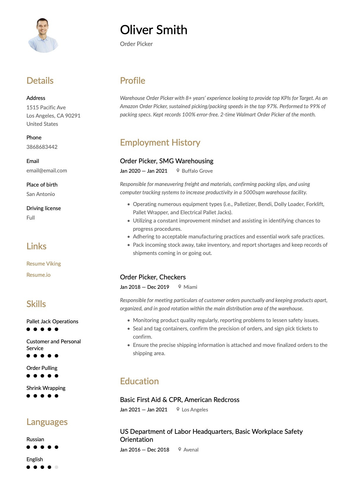 6 photos of the Sample Resume for Warehouse order Picker