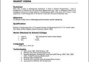 Back To Sample Resume format for Experienced It Professionals Free Download