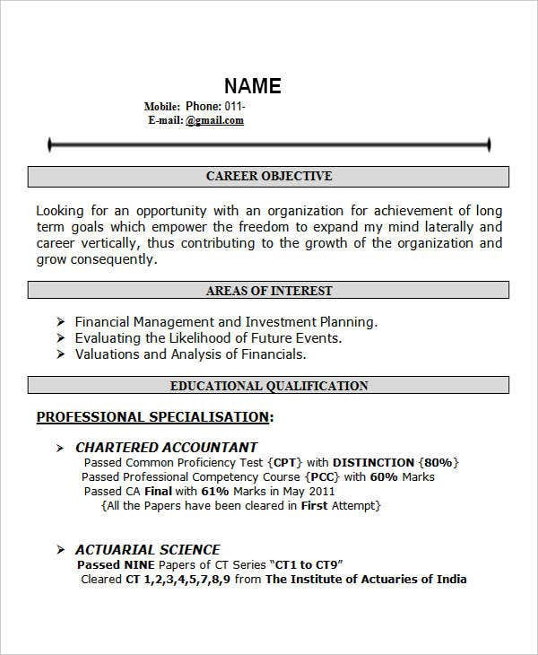 Back To Sample Resume format for Mcom Freshers
