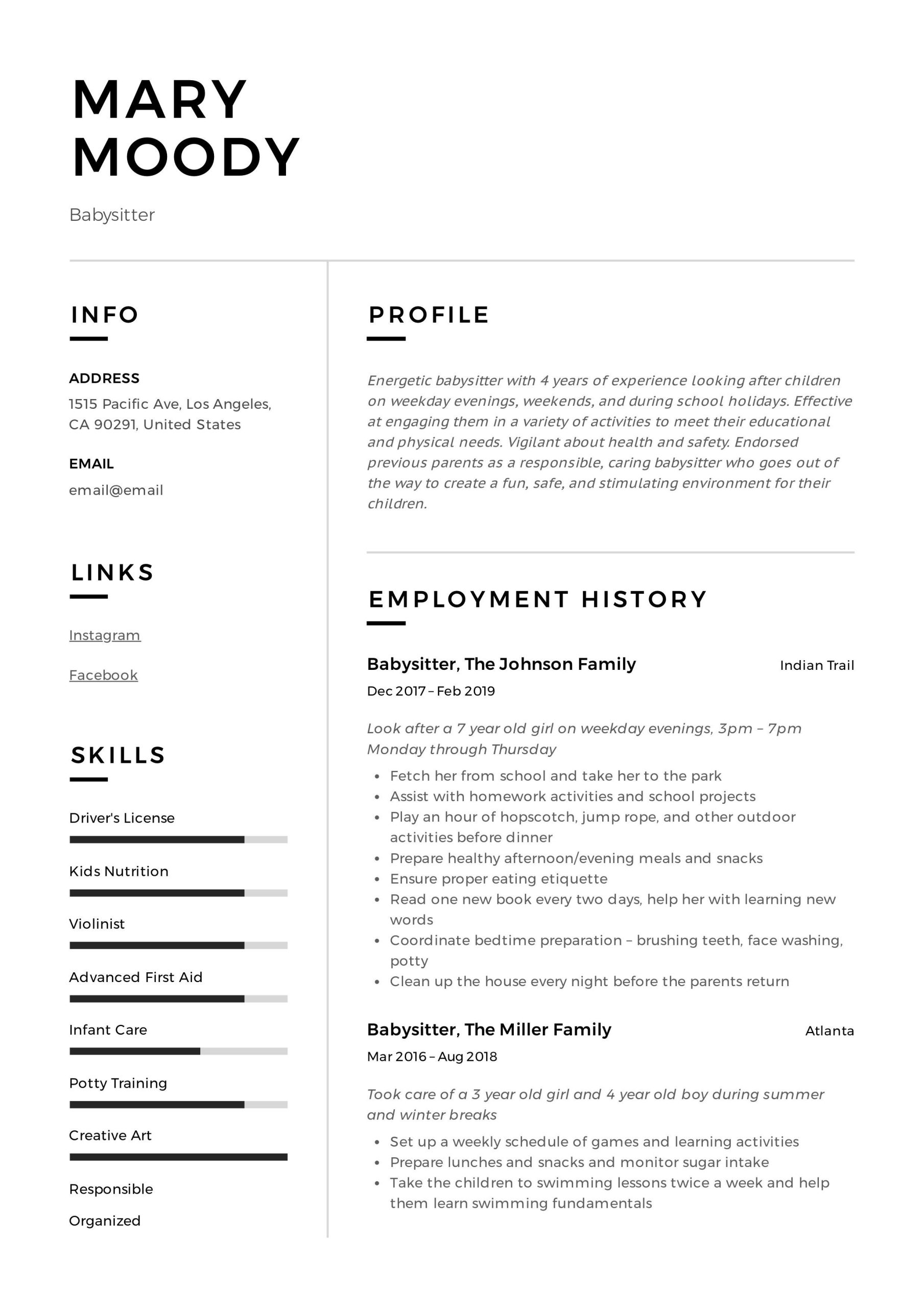 Sample Resume Job Description for Babysitter Babysitter Resume Sample Babysitter Jobs, Babysitter Resume, Job … and all other pictures, designs or photos on our website are copyright of their respective owners. we get our pictures from another websites, search engines and other sources to use as an inspiration for you. please contact us if you think we are infringing copyright of your pictures using contact page. we will be very happy to help you.