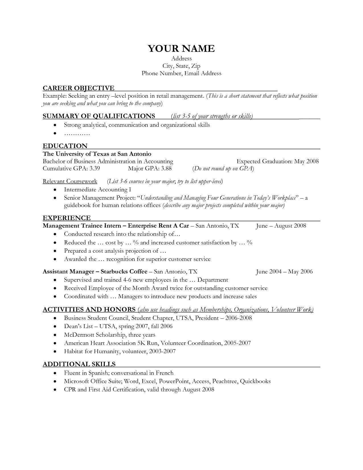 Back To Sample Resume Objectives for Entry Level Retail