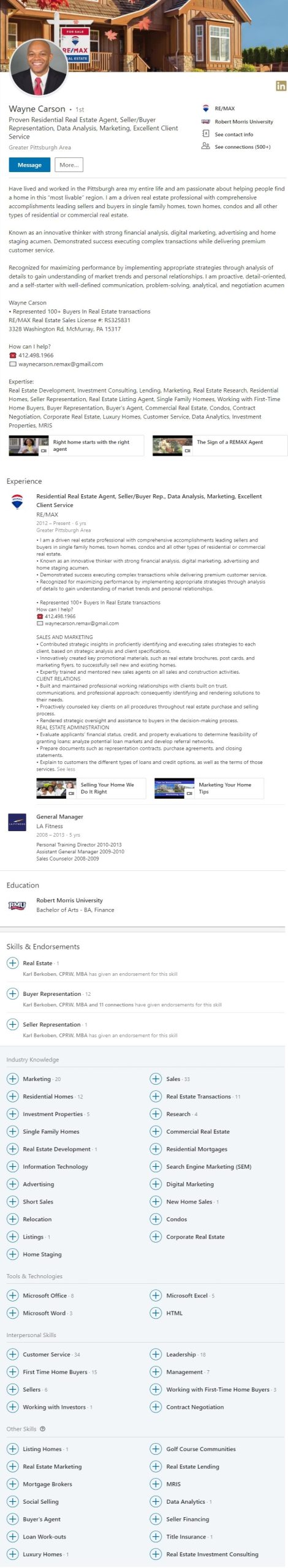 Sample Resume Real Estate Profiles On Linkedin Sample Real Estate Linkedin Profile & Resume: Commercial/residential and all other pictures, designs or photos on our website are copyright of their respective owners. we get our pictures from another websites, search engines and other sources to use as an inspiration for you. please contact us if you think we are infringing copyright of your pictures using contact page. we will be very happy to help you.
