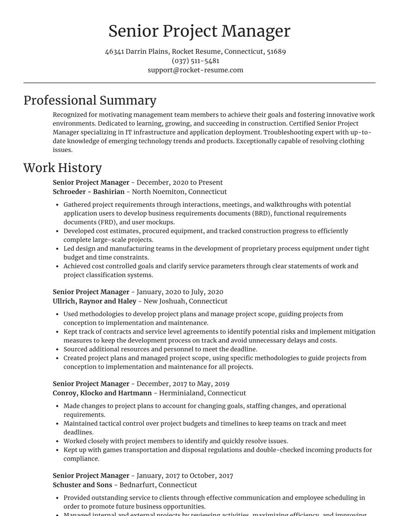 Sample Resume Senior Project Manager Construction Senior Project Manager Resume Generator & Example Rocket Resume and all other pictures, designs or photos on our website are copyright of their respective owners. we get our pictures from another websites, search engines and other sources to use as an inspiration for you. please contact us if you think we are infringing copyright of your pictures using contact page. we will be very happy to help you.