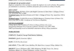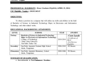 Back To Sample Resume with Civil Service Eligibility Philippines