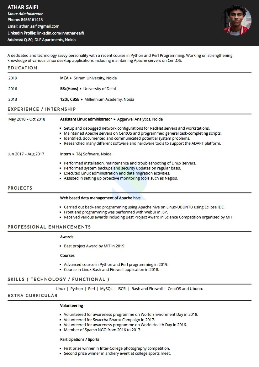Sample Resumes for Linux System Administrator Sample Resume Of Linux Administrator with Template & Writing Guide … and all other pictures, designs or photos on our website are copyright of their respective owners. we get our pictures from another websites, search engines and other sources to use as an inspiration for you. please contact us if you think we are infringing copyright of your pictures using contact page. we will be very happy to help you.