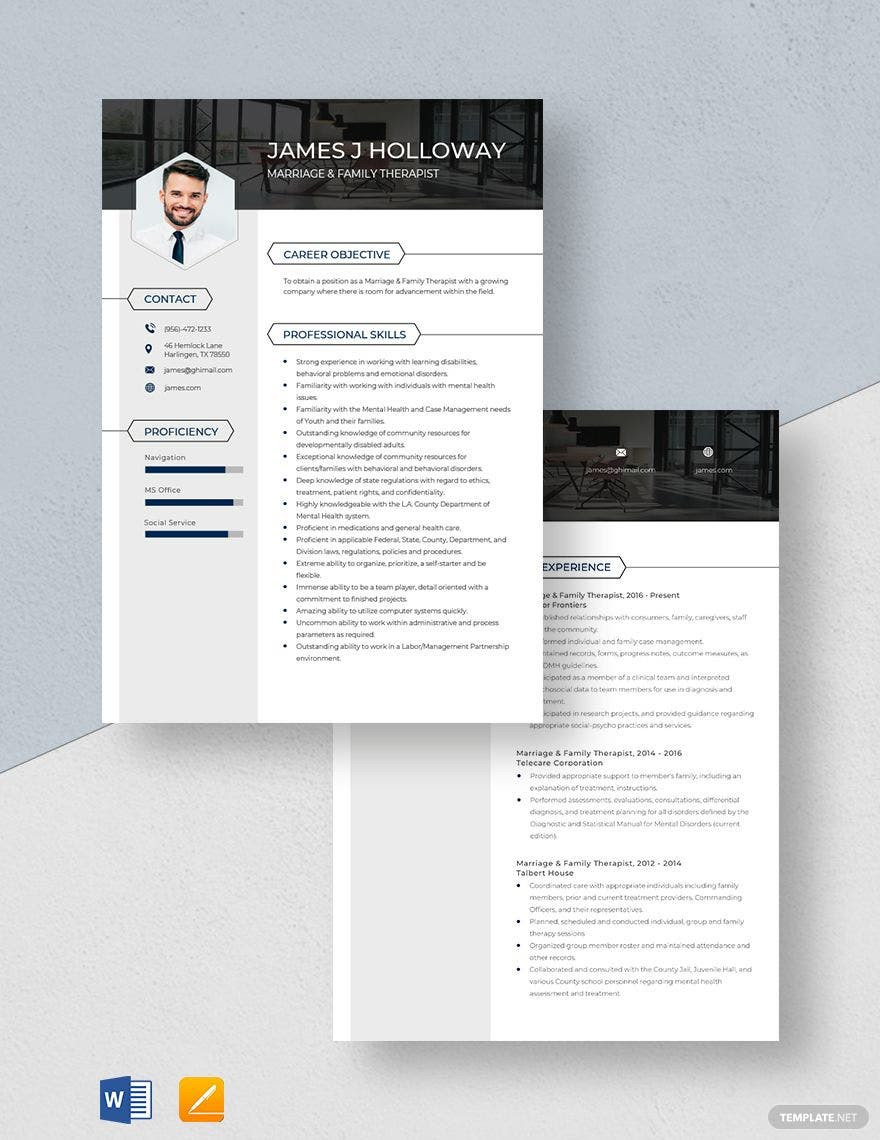 Sample Resumes for Marriage and Family therapist Marriage & Family therapist Resume Template – Word, Apple Pages … and all other pictures, designs or photos on our website are copyright of their respective owners. we get our pictures from another websites, search engines and other sources to use as an inspiration for you. please contact us if you think we are infringing copyright of your pictures using contact page. we will be very happy to help you.