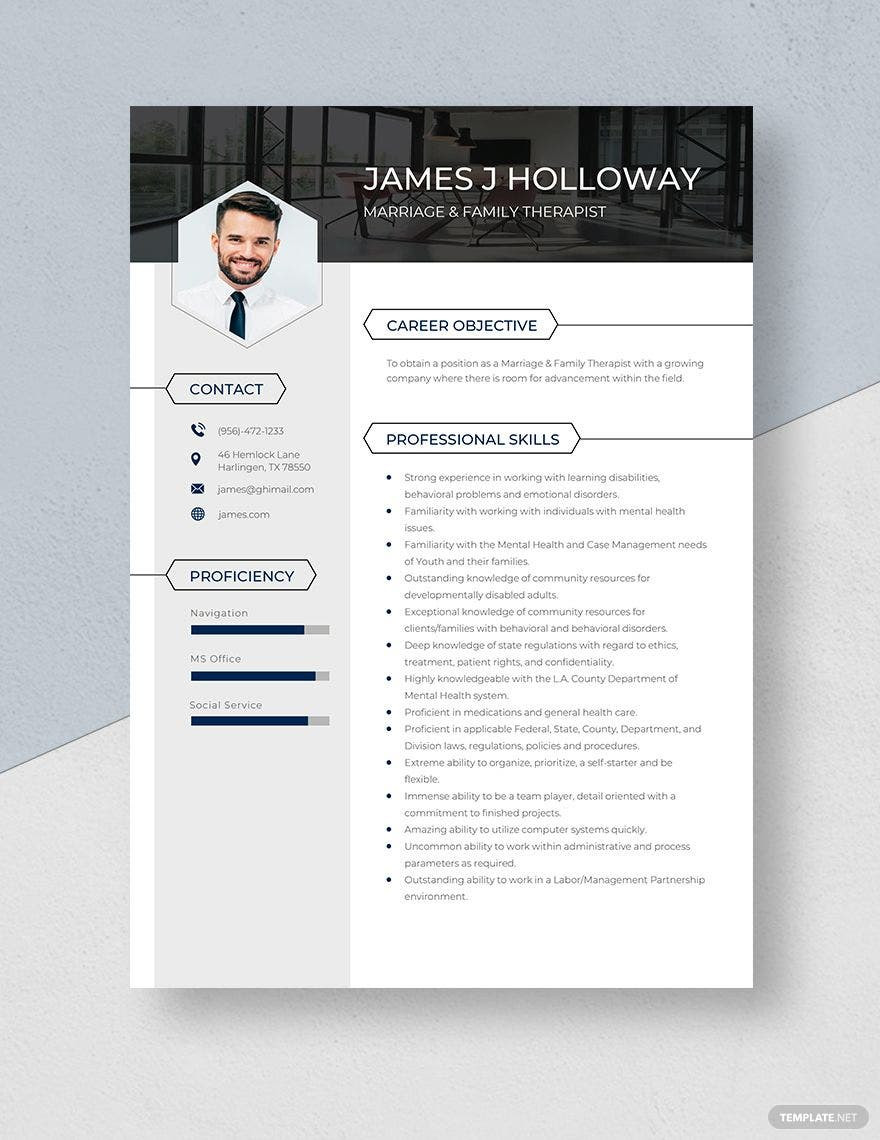 Sample Resumes for Marriage and Family therapist Marriage & Family therapist Resume Template – Word, Apple Pages … and all other pictures, designs or photos on our website are copyright of their respective owners. we get our pictures from another websites, search engines and other sources to use as an inspiration for you. please contact us if you think we are infringing copyright of your pictures using contact page. we will be very happy to help you.