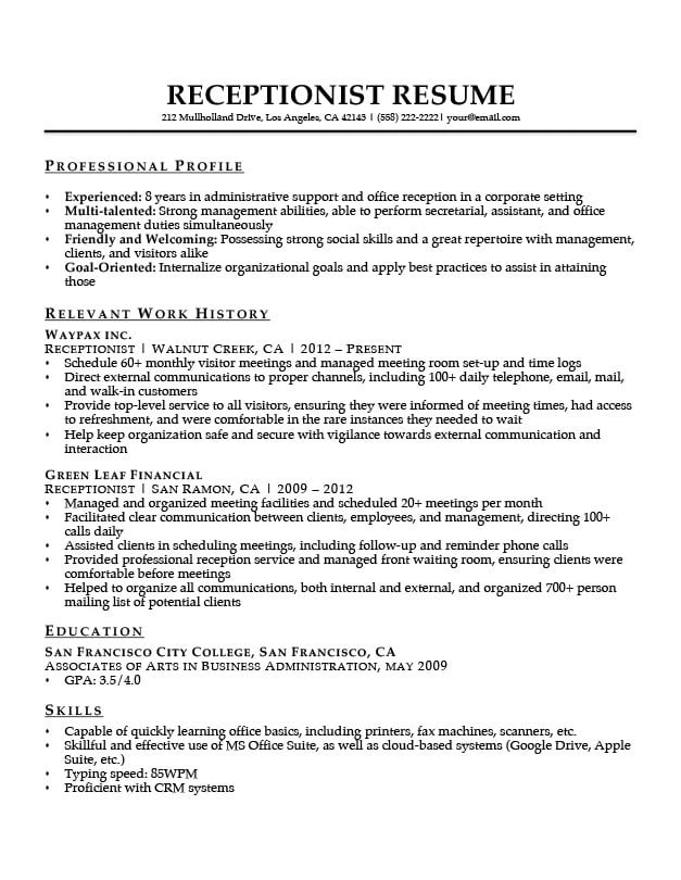 Sample Resumes for Receptionist Admin Positions Receptionist Resume Sample and all other pictures, designs or photos on our website are copyright of their respective owners. we get our pictures from another websites, search engines and other sources to use as an inspiration for you. please contact us if you think we are infringing copyright of your pictures using contact page. we will be very happy to help you.
