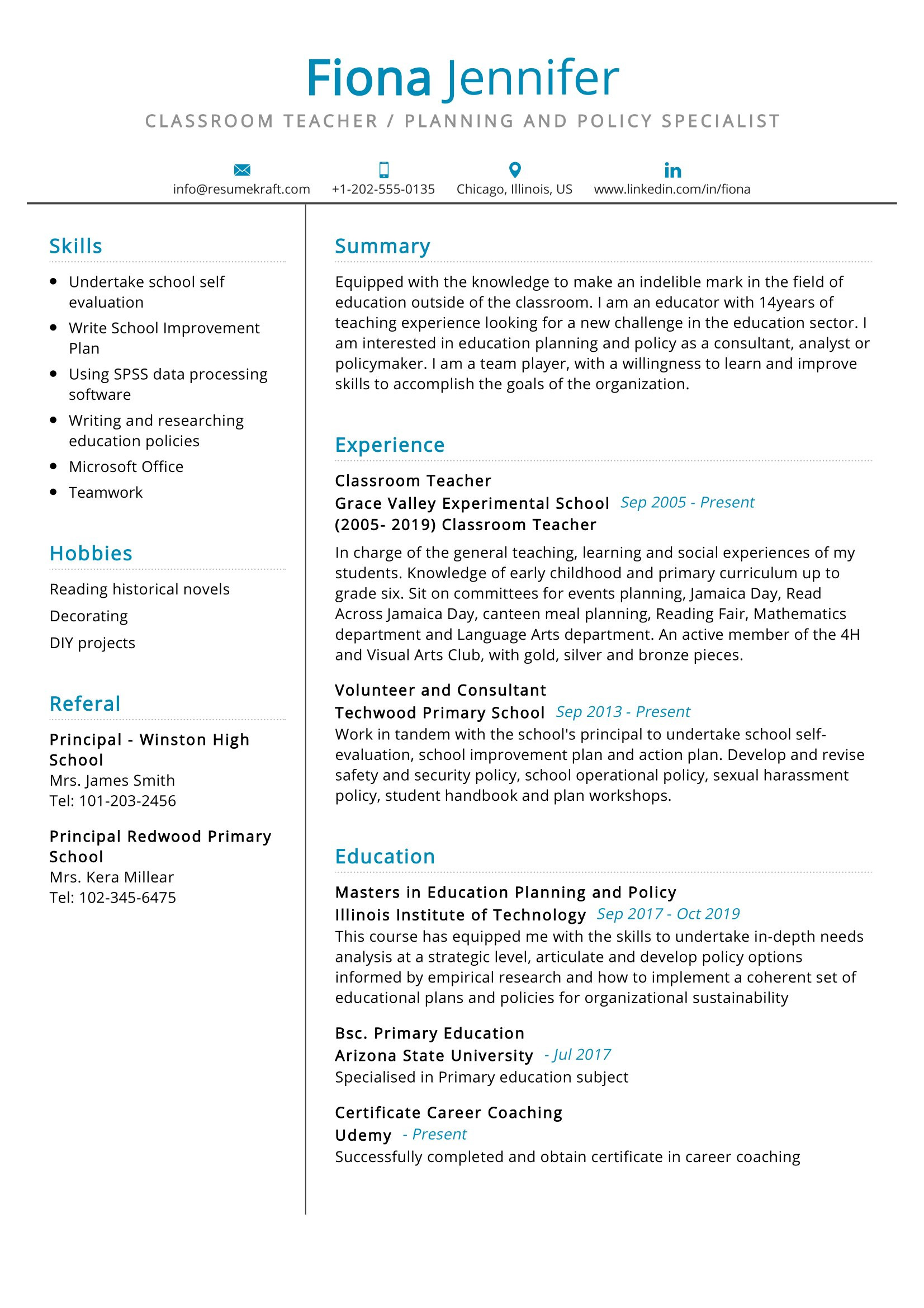 Back To Sample Resumes for Teachers Beyond the Classroom