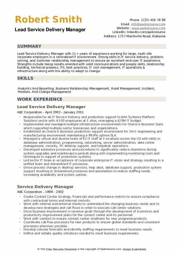 Sample Service Delivery Manager Resume Download Service Delivery Manager Resume Samples and all other pictures, designs or photos on our website are copyright of their respective owners. we get our pictures from another websites, search engines and other sources to use as an inspiration for you. please contact us if you think we are infringing copyright of your pictures using contact page. we will be very happy to help you.