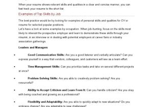 Sample Skills and Qualities for Resume Leadership Resume Sample Monster.com and all other pictures, designs or photos on our website are copyright of their respective owners. we get our pictures from another websites, search engines and other sources to use as an inspiration for you. please contact us if you think we are infringing copyright of your pictures using contact page. we will be very happy to help you.