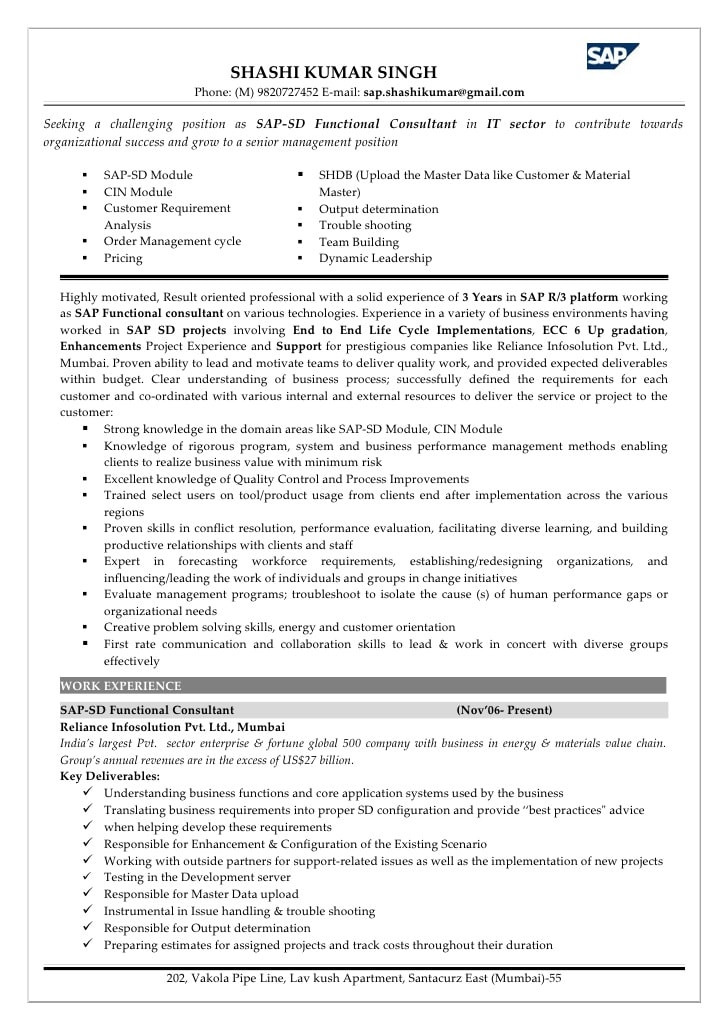 Sap B1 Functional Consultant Resume Sample Sap Sd Functional Consultant and all other pictures, designs or photos on our website are copyright of their respective owners. we get our pictures from another websites, search engines and other sources to use as an inspiration for you. please contact us if you think we are infringing copyright of your pictures using contact page. we will be very happy to help you.