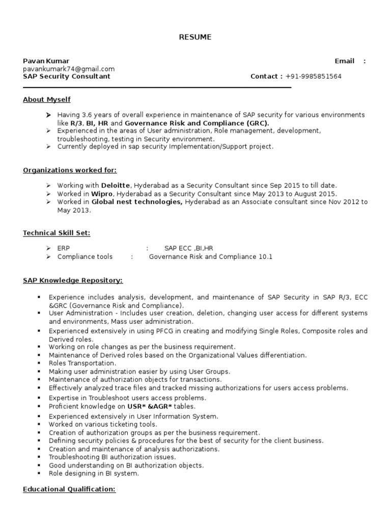 6 photos of the Sap Security and Grc Sample Resume