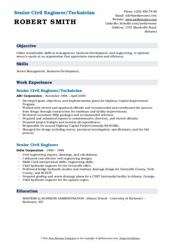 Senior Civil Engineer Resume Sample Pdf Senior Civil Engineer Resume Samples and all other pictures, designs or photos on our website are copyright of their respective owners. we get our pictures from another websites, search engines and other sources to use as an inspiration for you. please contact us if you think we are infringing copyright of your pictures using contact page. we will be very happy to help you.