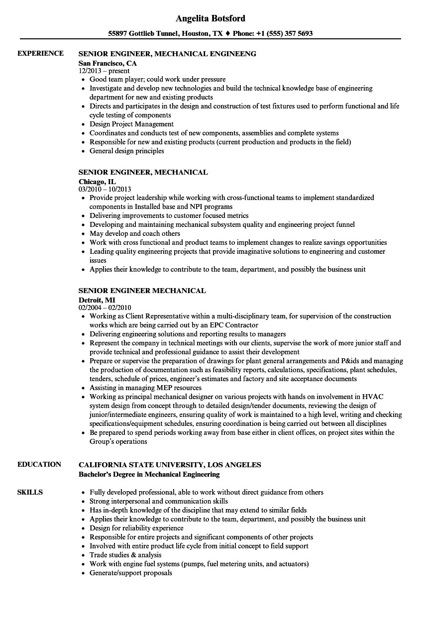 Senior Mechanical Design Engineer Resume Sample Senior Engineer Mechanical Resume Samples and all other pictures, designs or photos on our website are copyright of their respective owners. we get our pictures from another websites, search engines and other sources to use as an inspiration for you. please contact us if you think we are infringing copyright of your pictures using contact page. we will be very happy to help you.