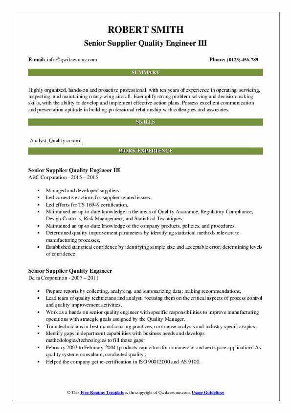 Supplier Quality assurance Engineer Resume Sample Senior Supplier Quality Engineer Resume Samples and all other pictures, designs or photos on our website are copyright of their respective owners. we get our pictures from another websites, search engines and other sources to use as an inspiration for you. please contact us if you think we are infringing copyright of your pictures using contact page. we will be very happy to help you.
