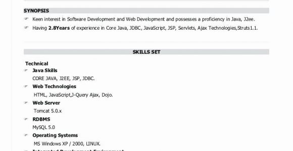 6 Months Experience Resume Sample In Java Resume format for 6 Months Experience In Java Resume