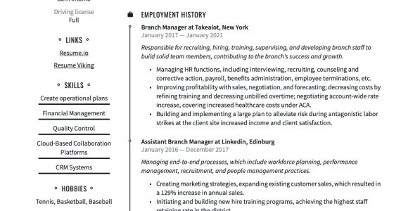 Bank Branch Operations Manager Resume Sample
