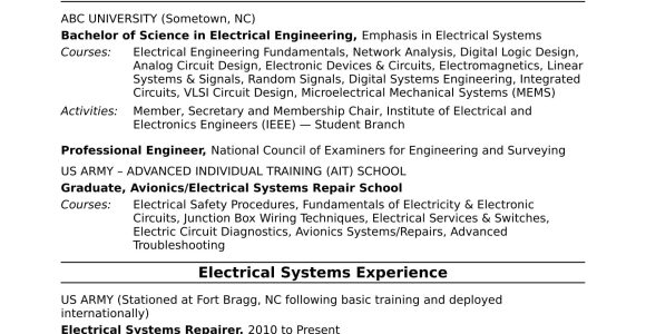 Sample Resume for New Graduate Electrical Engineer