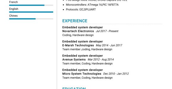 Embedded Systems Resume Sample for Freshers