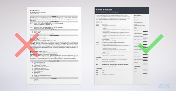English as A Second Language Teacher Resume Sample