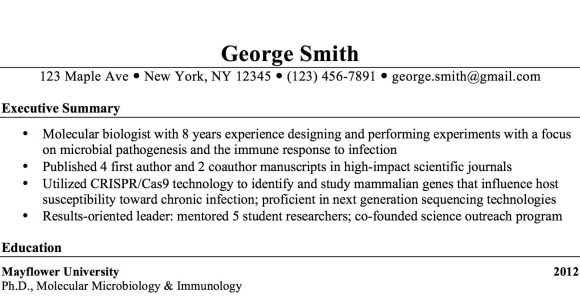 Samples Of Executive Summary for Resume