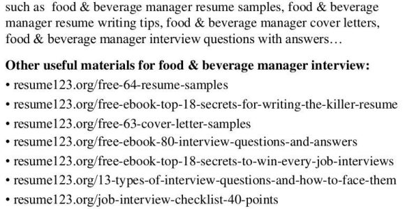 Food and Beverage Manager Resume Sample Food and Beverage Manager Resume Samples and Templates