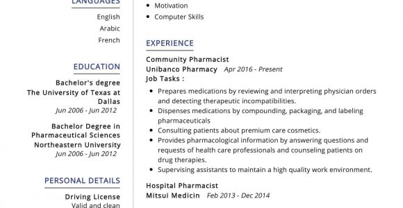 Sample Resume for Fresh Graduate Pharmacist