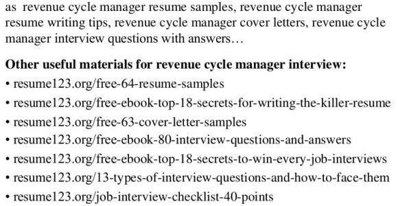 Healthcare Revenue Cycle Management Resume Samples - A resume is a formal document that contains a summary of relevant put-on experience and education and is usually created for the mean of obtai...