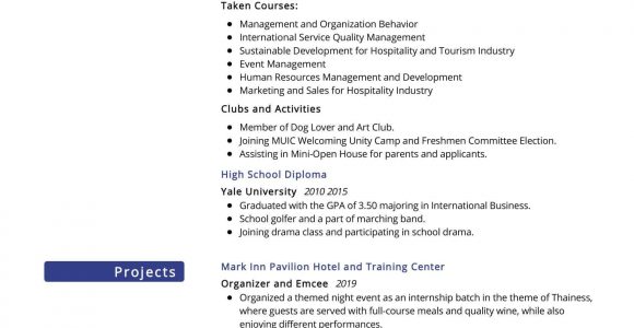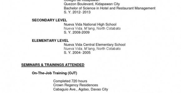 Sample Resume for Hotel and Restaurant Management Fresh Graduate