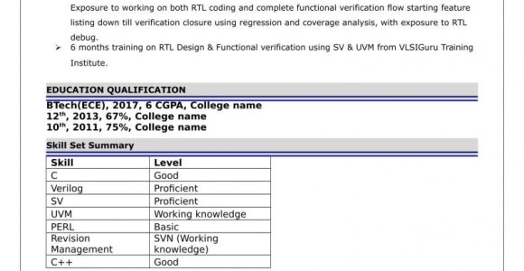 Sample Resume for Vlsi Verification Engineer Fresher