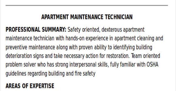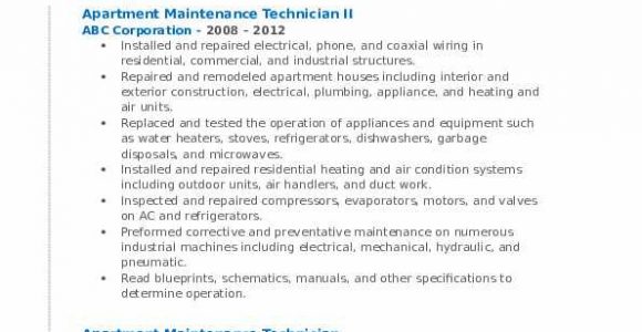 Sample Resume for Apartment Maintenance Technician