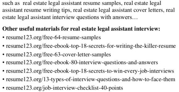Real Estate Legal assistant Resume Sample - A resume is a formal document that contains a summary of relevant put-on experience and education and is usually created for the endeavor of obtaining ...