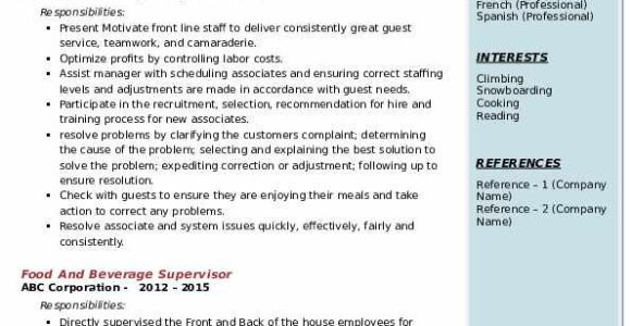 Sample Resume for Food and Beverage Supervisor top Food and Beverage Supervisor Resume Sample Brilliant