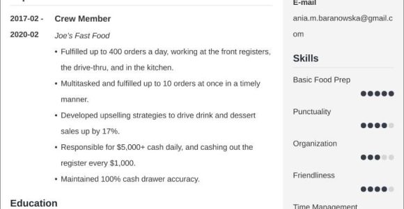 Sample Resume for Service Crew Fast Food