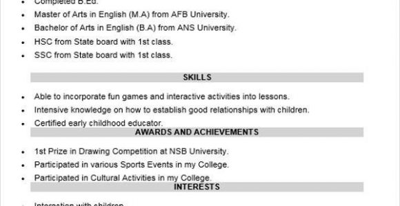 Sample Resume for Preschool Teacher Fresher - A resume is a formal document that contains a summary of relevant do something experience and education and is usually created for the direct of obta...