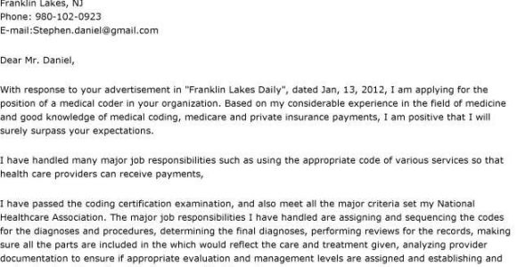 Sample Resume Cover Letter for Medical Coding - A resume is a formal document that contains a summary of relevant piece of legislation experience and education and is usually created for the obje...