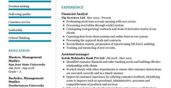 Sample Resume Financial Analyst for A Banking
