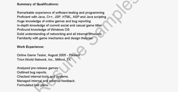 Sample Resume for Game Tester Fresher - A resume is a formal document that contains a summary of relevant put on an act experience and education and is usually created for the intend of obtaining...