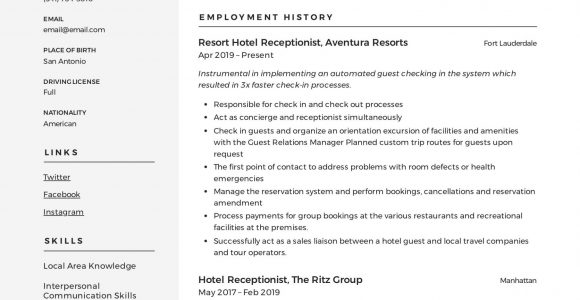 Sample Resume for Hotel Front Desk Receptionist - A resume is a formal document that contains a summary of relevant feat experience and education and is usually created for the wish of obtaining ...