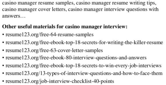 Sample Resume for Casino Pit Supervisor - A resume is a formal document that contains a summary of relevant work experience and education and is usually created for the intend of obtaining a job ...