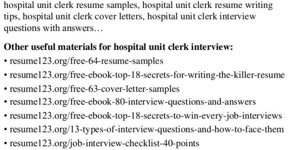 Sample Resume for Unit Secretary In A Hospital - A resume is a formal document that contains a summary of relevant deed experience and education and is usually created for the point of obtaining ...